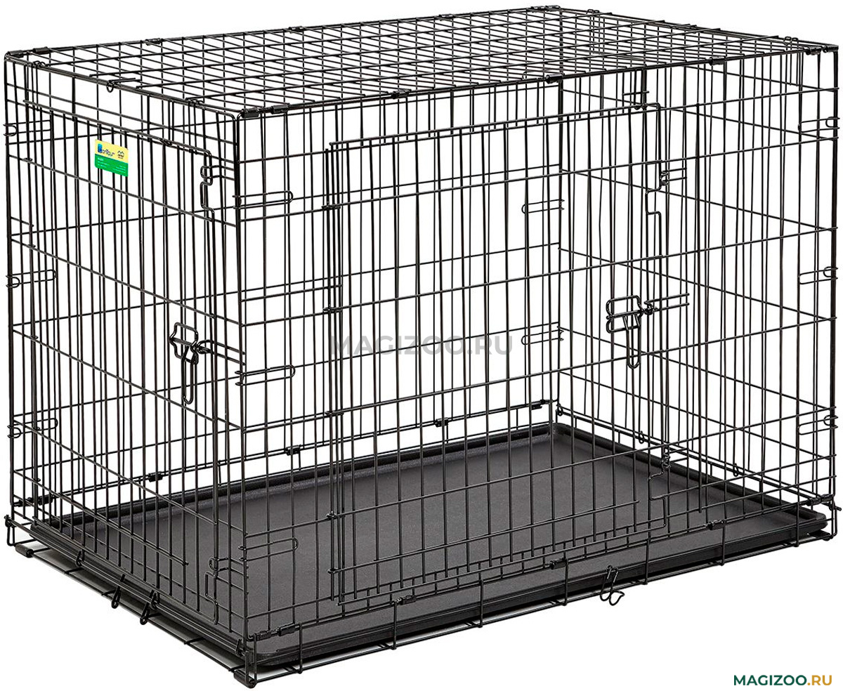 Двери, расположенные на смежных боковых сторонах клетки, оборудованы низкими порогами и большими отверстиями, позволяя домашним животным легко входить и выходить из клетки.
