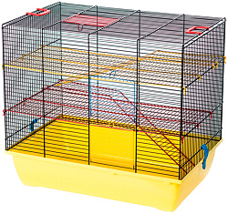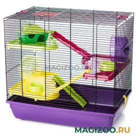Надежная клетка от компании Inter-Zoo для грызунов с пластиковыми цветными аксессуарами с цветной решеткой.