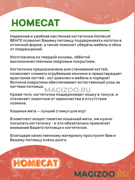 Надежная и удобная настенная когтеточка Homecat ВЕНГЕ позволит Вашему питомцу поддерживать коготки в отличной форме, а также поможет уберечь мебель и обои от повреждений.
