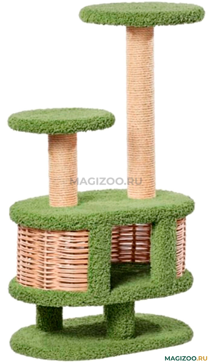 Уютный комплекс, обитый ковролином и оснащенный когтеточками для Вашего любимца. Наверху удобная большая лежанка и ступенька, откуда так интересно наблюдать за происходящими вокруг событиями! Внизу – уютный плетеный домик, где так хорошо поспать или просто спрятаться.