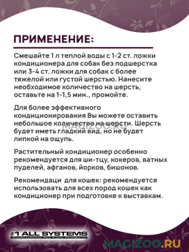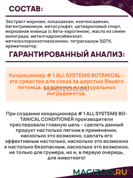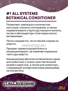 Кондиционер # 1 ALL SYSTEMS BOTANICAL – это средство для ухода за шерстью Вашего питомца, созданное из натуральных ингредиентов.