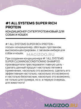 # 1 ALL SYSTEMS SUPER RICH PROTEIN – лосьон-кондиционер, обогащен протеином, высококонцентрирован, с запахом имбиря для собак и кошек.