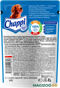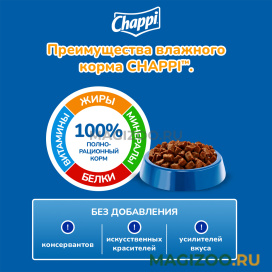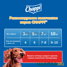 Состав всех кормов данного бренда включает только натуральные составляющие растительного и животного происхождения. Поэтому питание CHAPPI — это грамотно сбалансированный, комплексный рацион, который подойдет собакам любых пород и возрастов!