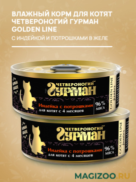 Корм для котят Четвероногий Гурман Golden Line Индейка с Потрошками в желе.