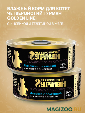 Корм для котят Четвероногий Гурман Golden Line Индейка с Телятиной в желе.