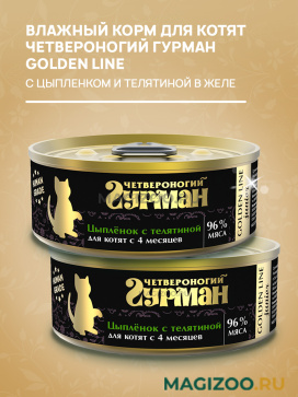 Корм для котят Четвероногий Гурман Golden Line Цыпленок с Телятиной в желе.