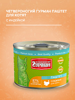 Консервы Четвероногий Гурман МЯСНОЕ АССОРТИ для котят с индейкой можно назвать кормом класса суперпремиум.