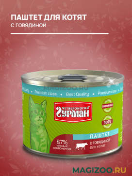 Консервы Четвероногий Гурман ПАШТЕТ для котят с говядиной можно назвать кормом класса суперпремиум.