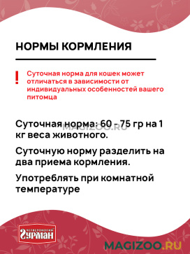 Суточная норма: 60 - 75 гр на 1 кг веса животного.