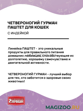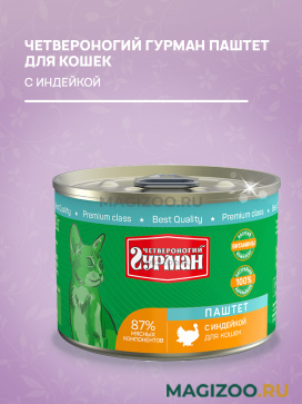 Консервы Четвероногий Гурман ПАШТЕТ для взрослых кошек с индейкой можно назвать кормом класса суперпремиум.