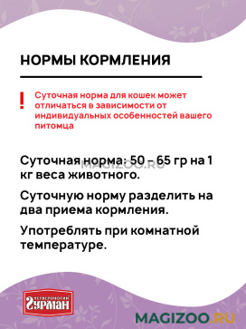 Суточная норма: 50 – 65 гр на 1 кг веса животного.