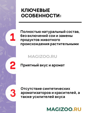 Технологии и рецептуры разработаны при участии ветеринарных диетологов. Производитель строго придерживается принципов сохранения природных компонентов в питании и для изготовления всей продукции использует только высококачественное натуральное сырье.