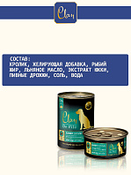 Кролик, желирующая добавка, рыбий жир, льняное масло, экстракт Юкки, пивные дрожжи, соль, вода.