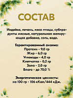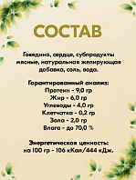 Телятина, желирующая добавка, рыбий жир, льняное масло, экстракт Юкки, пивные дрожжи, соль, вода.
