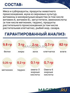 - Здоровье сердца. Содержит натуральный источник таурина для поддержания здоровья сердца. Не содержит искусственных красителей и консервантов.
