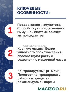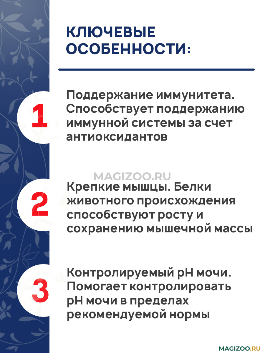 - Контролируемый pH мочи. Помогает контролировать pH мочи в пределах рекомендуемой нормы.