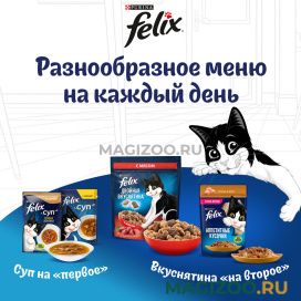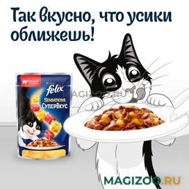 Корм для кошек Felix «Супервкус» полнорационный, с оптимальной комбинацией минеральных веществ и витаминов для правильной работы организма.