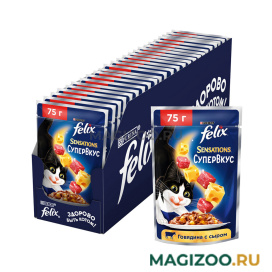 Sensations в переводе — это и «ощущения», и нечто сенсационное. А если это «супер» вкус — то эффект многократно усилен. Эксперты Purina, разрабатывая влажные корма для домашних питомцев, создали влажный корм для взрослых кошек Felix «Sensations Супервкус». Влажный корм «Супервкус» с восхитительным вкусом говядины и сыра подарит Вашему любимцу богатейшую палитру супер-ощущений вкуса и аромата.