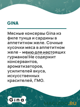 Мясные консервы Gina из филе тунца и сардины в аппетитном желе.