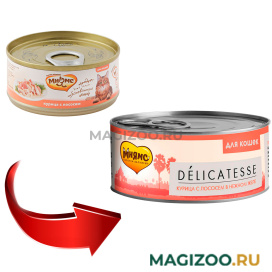 Полнорационные консервы для кошек Курица с лососем в нежном желе.
