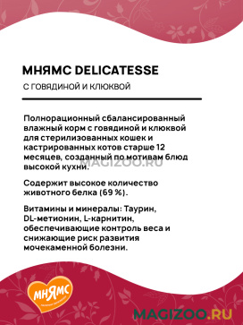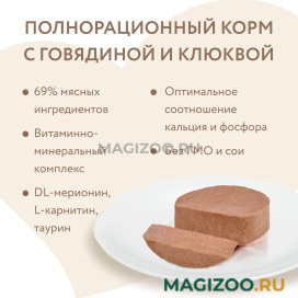 Полнорационный сбалансированный влажный корм с говядиной и клюквой для стерилизованных кошек и кастрированных котов старше 12 месяцев, созданный по мотивам блюд высокой кухни.