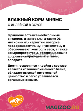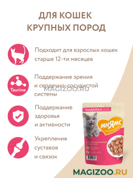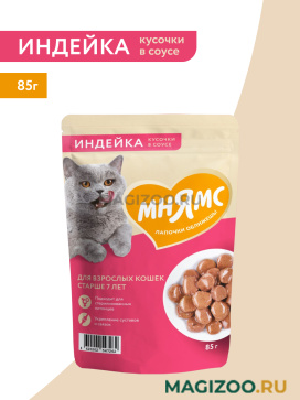 Высококачественный полнорационный сбалансированный влажный корм с индейкой подходит для взрослых кошек старше 7 лет.
