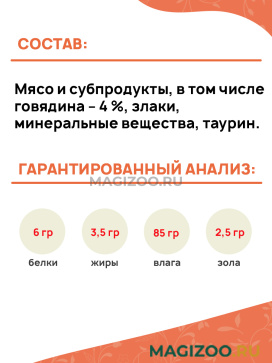 Вкусный полнорационный консервированный корм с говядиной для Вашей кошки.
