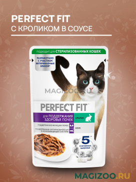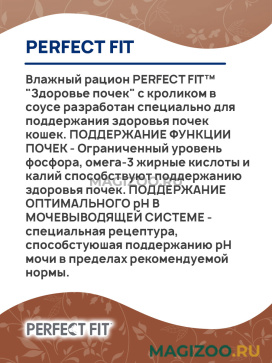 Влажный рацион PERFECT FIT "Здоровье почек" с кроликом в соусе разработан специально для поддержания здоровья почек кошек.