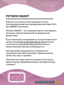 Petibon SMART – это нежный паштет для Вашего питомца, приготовленный по фирменной рецептуре.