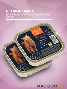 Паштет из сочного мяса индейки и утки - полнорационный консервированный корм Petibon SMART для кошек.