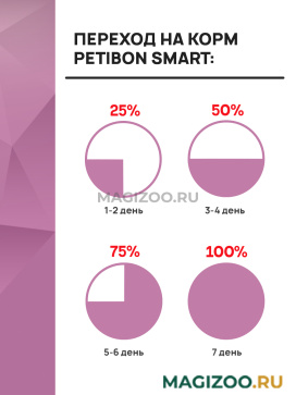 Информация о составе и ингредиентах, цветовом решении, технических и иных характеристиках, стране-изготовителе, внешнем виде и комплекте поставки товара носит справочный характер и основана на последних доступных к моменту публикации сведениях. Доставка данного товара осуществляется во все регионы РФ.Под брендом PETIBON выпускаются разнообразные корма для собак и кошек. Технологии и рецептуры разработаны при участии ветеринарных диетологов. Компания строго придерживается принципов сохранения природных компонентов в питании и для изготовления всей продукции используем только высококачественное натуральное сырье. Продукция компании производится на современном зарубежном оборудовании и проходит строгий контроль качества на всех стадиях производства.