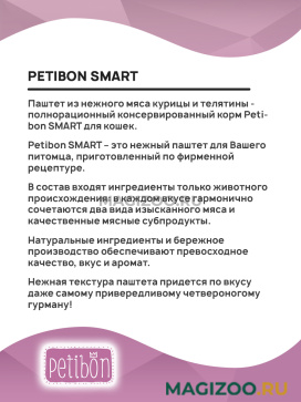 Petibon SMART – это нежный паштет для Вашего питомца, приготовленный по фирменной рецептуре.
