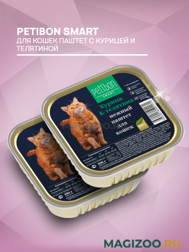 Паштет из нежного мяса курицы и телятины - полнорационный консервированный корм Petibon SMART для кошек.