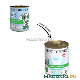 BEST DINNER EXCLUSIVE HYPOALLERGENIC – это рубленое мясо, приготовленное по рецепту, разработанному с учетом физиологических особенностей собак, склонных к возникновению пищевой аллергии.