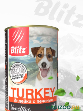 Корм Blitz изготовлен из двух видов нежного мяса — индейки и печени.