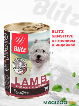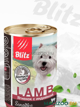 Корм Blitz изготовлен из двух видов нежного мяса — ягнёнка и индейки.