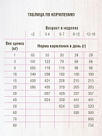 Питательные добавки на 1 кг: Витамин А 1500 МЕ, витамин D3 250 МЕ, витамин Е 100 мг, Кальций (Ca) 2 гр, Фосфор (P) 1,4 гр, Цинк (Zn) 10 мг, Mарганец (Mn) 2 мг, Йод (I) 0,7 мг, Медь (Cu) 0,2 мг, биотин 0,1 мг.
