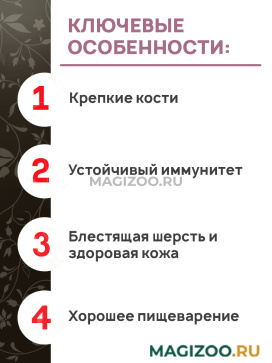 Витамин Е и природные антиоксиданты повышают защитные функции организма Вашего питомца от неблагоприятного воздействия окружающей среды.