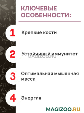 Витамин Е и природные антиоксиданты повышают защитные функции организма Вашего питомца от неблагоприятного воздействия окружающей среды.