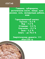 Говядина, субпродукты мясные, тыква, желирующая добавка, растительное масло, соль, бульон.