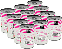 Фарш из кролика (не менее 4%), мясо и мясные субпродукты, фарш куриный и куриные субпродукты, мясной бульон, злаки, растительное масло, витамины и минеральные вещества.