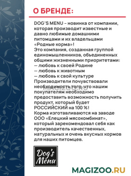 DOG’S MENU – новинка от компании, которая производит известные и давно любимые домашними питомцами и их владельцами «Родные корма»!