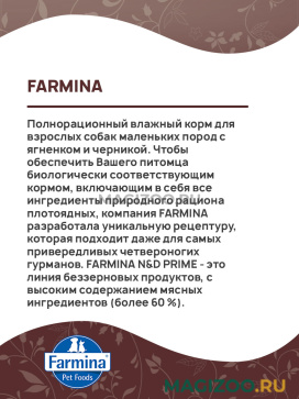 FARMINA N&D PRIME - это линия беззерновых продуктов, с высоким содержанием мясных ингредиентов (более 60 %).