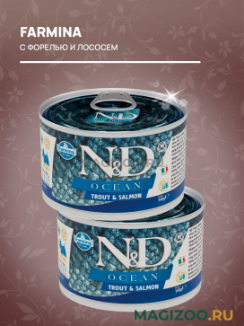 FARMINA N&D OCEAN - это линия беззерновых продуктов, с высоким содержанием рыбы и моллюсков.