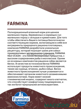FARMINA N&D OCEAN - это линия беззерновых продуктов, с высоким содержанием рыбы и моллюсков.