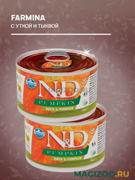 FARMINA N&D PUMPKIN - это линия беззерновых продуктов, с высоким содержанием мясных ингредиентов (более 60 %) и тыквы – овоща с уникальными свойствами.
