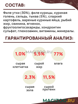 Полнорационный влажный корм для взрослых собак маленьких пород с тыквой и уткой.