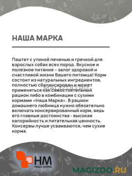 Паштет с утиной печенью и гречкой для взрослых собак всех пород. Вкусное и полезное питание – залог здоровой и счастливой жизни Вашего питомца!