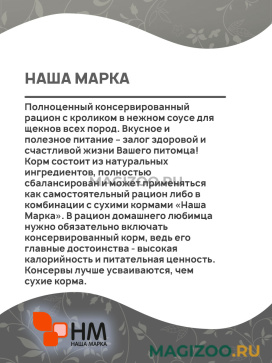 Полноценный консервированный рацион с кроликом в нежном соусе для щекнов всех пород. Вкусное и полезное питание – залог здоровой и счастливой жизни Вашего питомца!