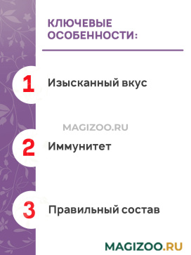 - Изысканный вкус. Вкусное и полезное питание подарит радость Вашей кошке.